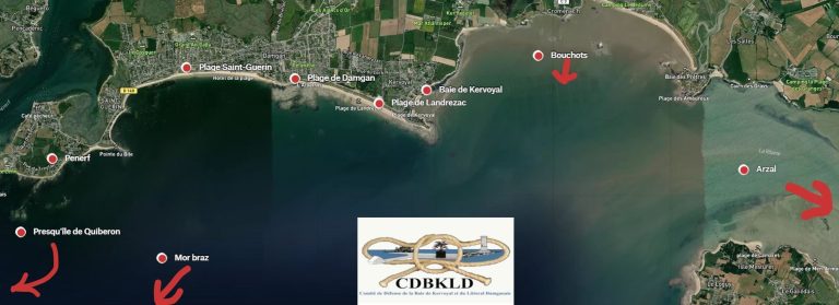 L’association Comité de Défense de la Baie de Kervoyal et du Littoral Damganais CDBKLD a pour but: – de veiller à la protection du littoral Damganais et de la baie de Kervoyal, c’est-à-dire la zone littorale comprise entre la Rivière de Penerf et la Pointe de Pen-Lan, et qui comprend en particulier la zone côtière située entre la Rivière de Penerf et la pointe du Bil, la plage de Saint Guérin, la plage de Damgan, la grande plage de Kervoyal, les anses de Kervoyal, de port Lestre, de Tréhervé, de Cromenac’h, de Bétahon et le port de Billiers. Depuis 2016 le Mor Braz a été ajouté au périmètre.